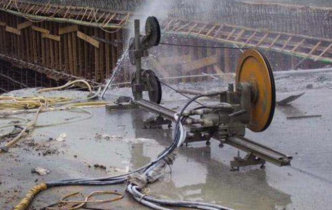 混凝土切開是指選用液壓墻鋸機、電動碟鋸機、水鉆或許馬路切開機等東西對混凝土構(gòu)件、墻體、路面等進(jìn)行切開的施工技能,它具有切開才能強,靜力無損,功率高,選用水冷卻,無施工粉塵等特色 :切開撤除:繩鋸切開是金剛石繩子在液壓馬達(dá)驅(qū)動下繞被切開物高速跋涉研磨然后完結(jié)切開作業(yè)。  運用繩鋸設(shè)備對混凝土切開拆 除···